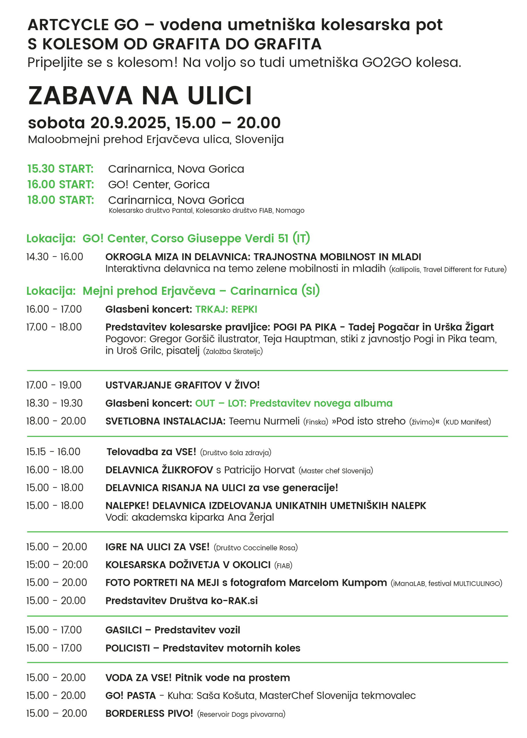 Let’s walk, dance, spin the pedals and co-create a space where the colours on the road connect the community. Together we will transform the border into a meeting point of green paths and creative socialising with art in motion. Come, experience, move – for a shared, sustainable future without borders!